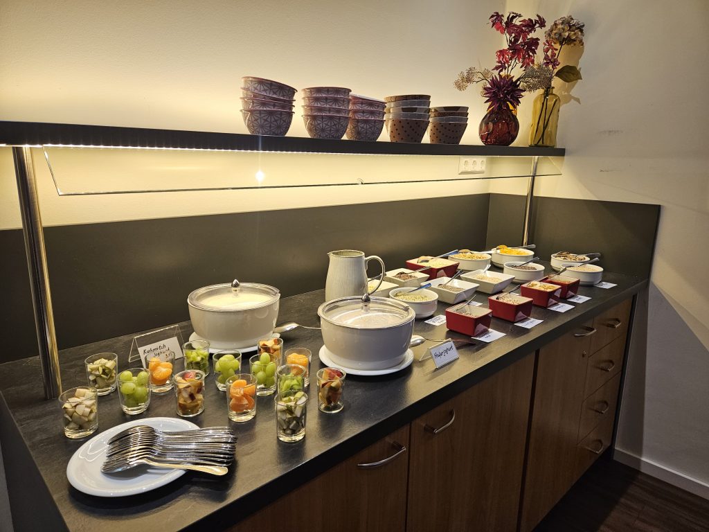 Starten Sie den Tag mit unserem reichhaltigen Frühstücksbuffet, das keine Wünsche offenlässt. Egal ob als Gast des Hotels oder als Besuchende